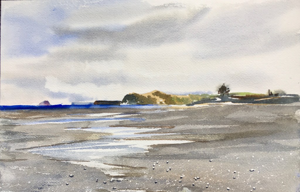 I thought when we went into lockdown this time I would get lots of painting done and all the household chores that are constantly waiting for me. Instead the motivation left the household and we preferred to sit about, reading, watching tv and making melting moments. I did do some paintings of the beach for the Watercolour NZ 5 day challenge, which helped a little.