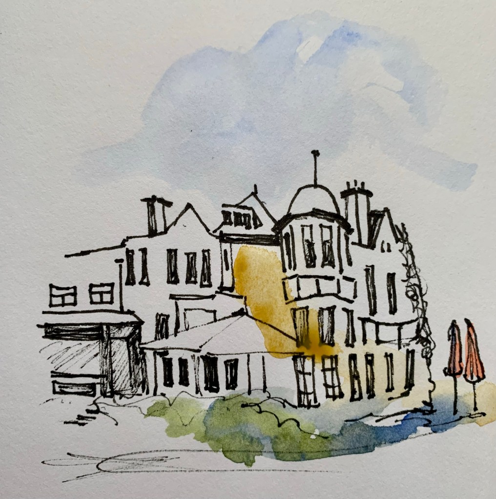 Later in the day we got to Inverness and our B&B. The address was 49 Fairfield Rd. We had to stay there because when I was a kid our address was 67 Fairfield Rd in Hawera. There is absolutely no resemblance to our house in Hawera though. We went for a walk and I managed to take a photo for this little painting.