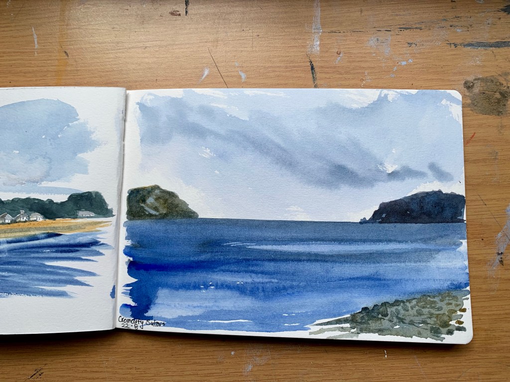 This painting is done on a third full size sheet of watercolour paper. Yesterday’s painting of the Heather hills was on a half sheet watercolour paper.