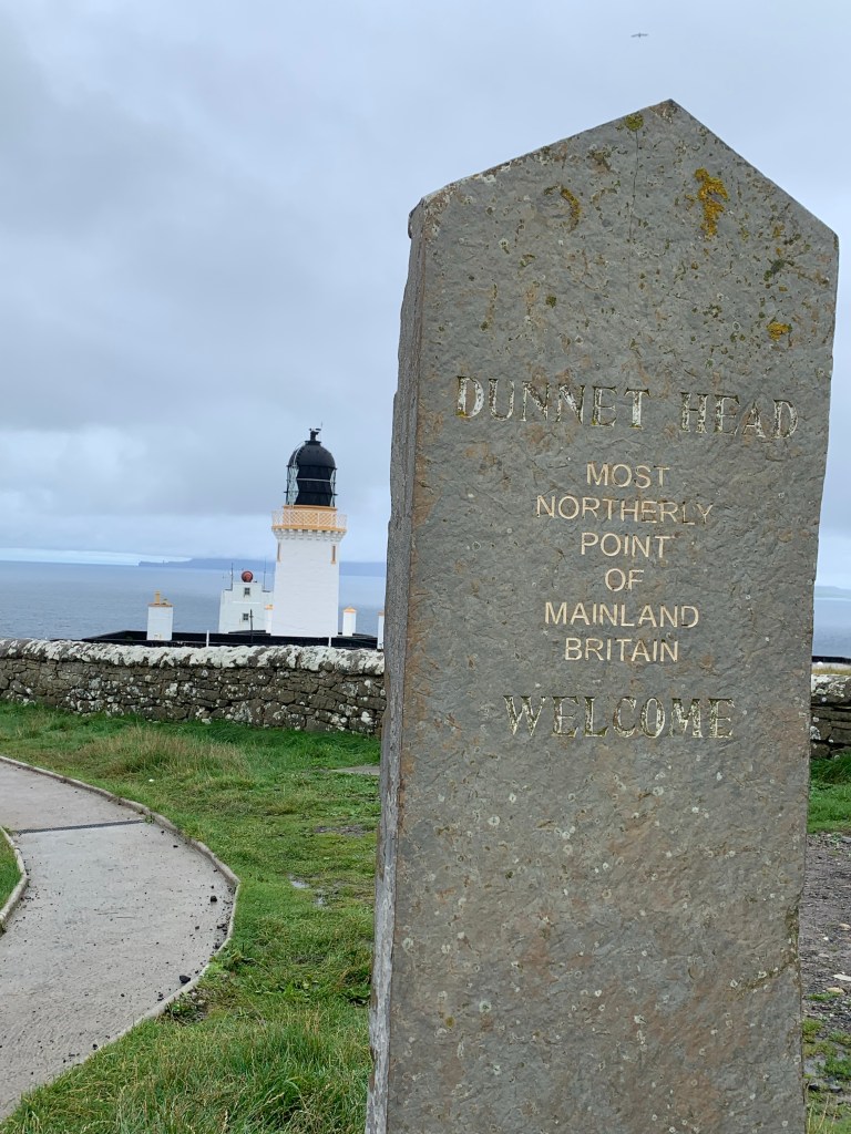 Started the day driving out of Thurso in the rain. The first stop was Dunnet Headland which is the most northern piece of land in Britain. COLD and WINDY but what a view. There is a lighthouse, still operating, old WWII bunkers and a private residence.