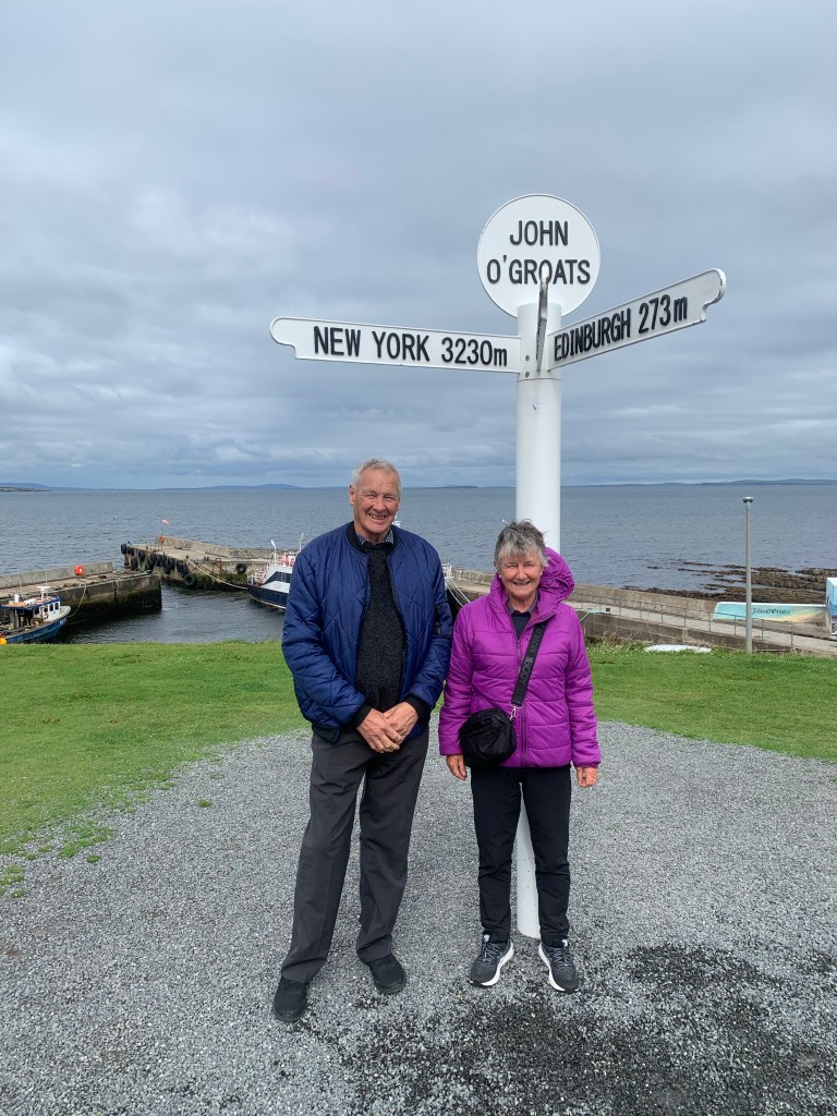 When my parents did their OE in 1976 they had their photo taken at John O’Groats standing against a signpost with number of miles to different parts of the world. I’m sure the sign said Wellington NZ, but don’t quote me. I remember that photo very clearly. So today Ken and I had our photo under the sign. There was no NZ there or anywhere close so we stood under the New York arrow and thought of Catie, our brave granddaughter who has just started George Washington Uni at DC. Close enough.