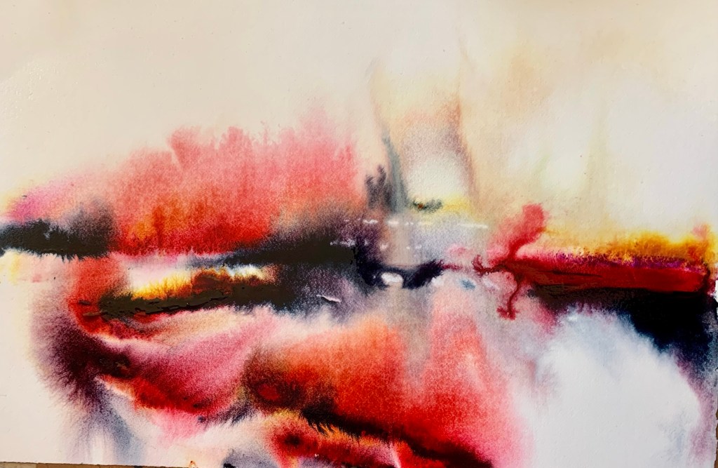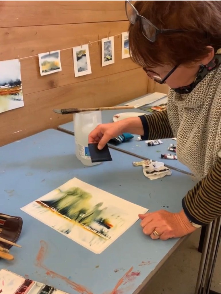 But today there was one piece of paper left that I really couldn’t take home white so I did a little demo of my technique of wet on wet.