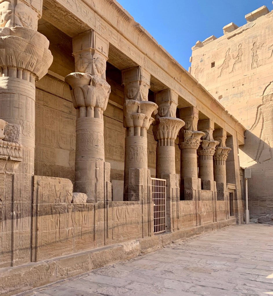 The multiple columns outside the birthing temple. The tops are flowers. The lotus and the papyrus.