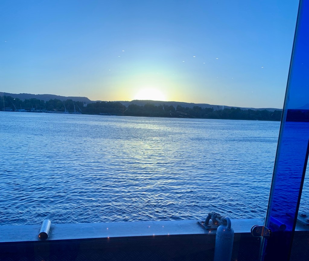The view of the Nile from the boat. Sunset as we got back this evening.