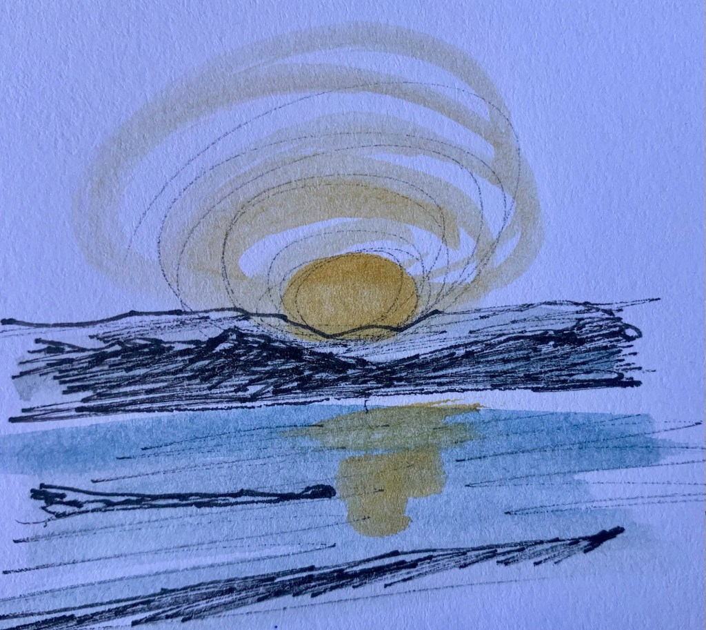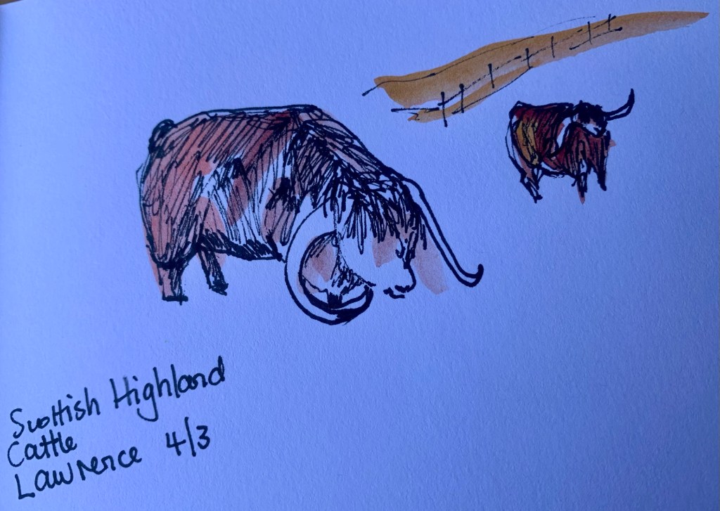 So I know it’s not April when I do my next blog but I wanted to share with you the daily sketches I have done while we have been travelling in our van.