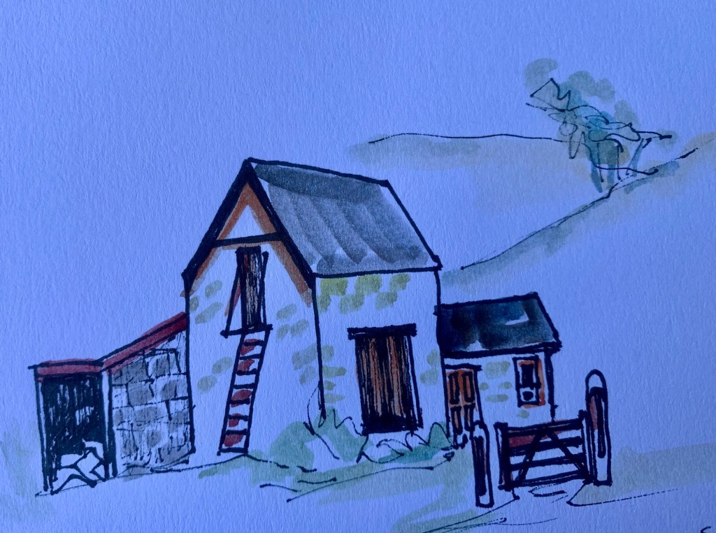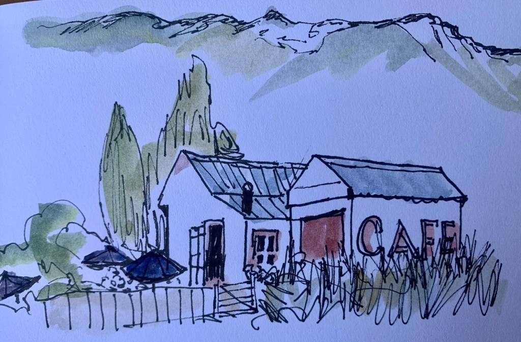 Found a cafe at Middlemarch and had a cuppa on the side of the road, with time for a sketch.