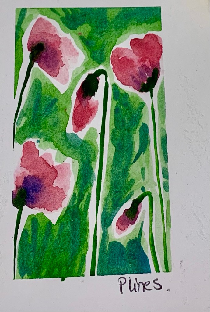 Welcome to my blog. Spring is in the air and we are having some warm weather which is very welcome. Unfortunately the weekend I was hanging out at Palmers garden centre, it was cold, windy and raining. Not conducive to people planning their spring gardens and coming in for plants, or art for that matter. Many people did stop and chat though and I had lots of positive comments regarding the work I had there. While it was very quiet I busied myself painting little pictures of FLOWERS (of course!)
