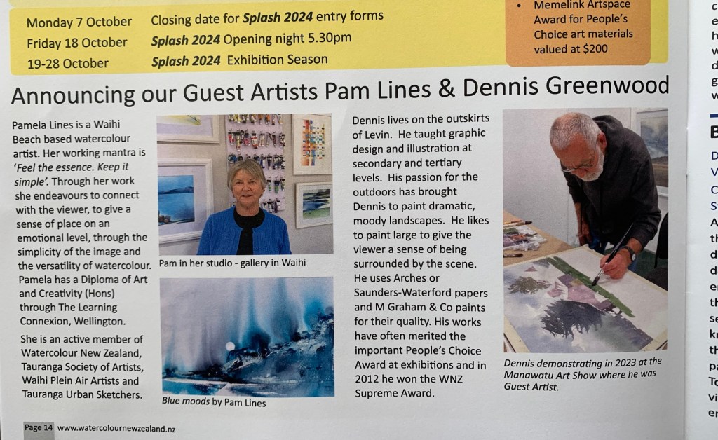 It’s official. The watercolour NZ newsletter has arrived in the mail box and it says in there that I’m one of the guest artists. So it must be true.