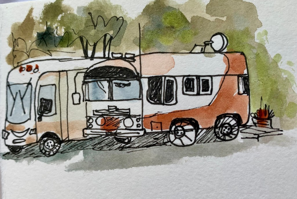 It was an enjoyable few days away, staying in our camping van. I even had time for sketching. Here are a few I did on my travels. Some plein air and others from photos.