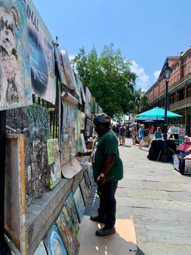 On a more sedate note we took the tram or streetcar to the French Quarter of the city. Just like Paris there were many artists displaying their works along the sidewalk.