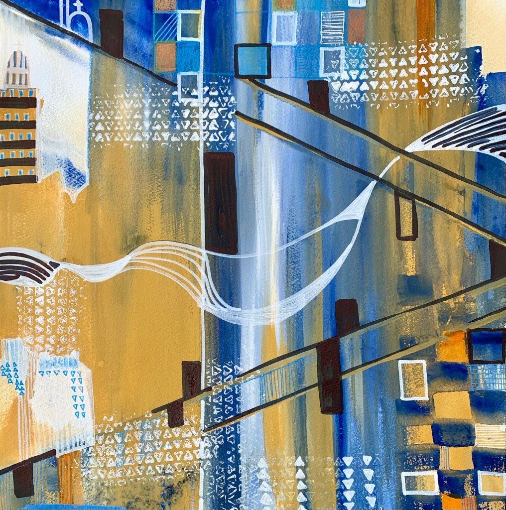This painting was an exercise in washes and colour layering. The watercolour looks more like the density of acrylics and less like the loose fluidity I like in my watercolours. It allows me to go back into the painting, adding shapes and line, with also using white gouache to introduce patterns and light. Although I enjoyed painting my Life’s Journey I feel the need to further the exploration into how to use this technique without loosing the fluidity of the medium.