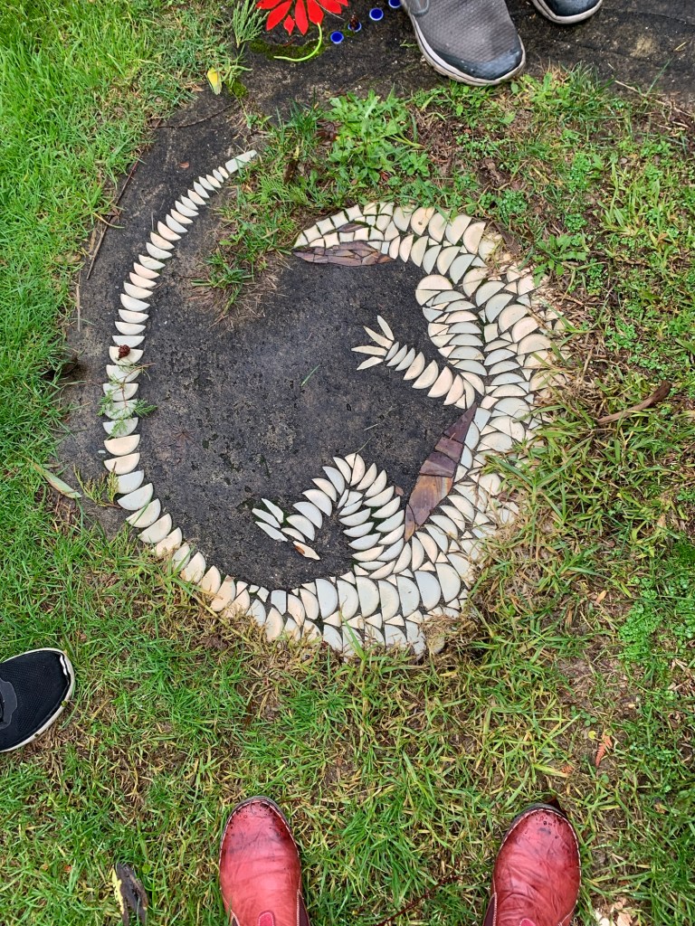 We’ve just had our July Plein air session at Terry’s garden in Waihi. A magical spot with interesting mosaic paths around the property.
