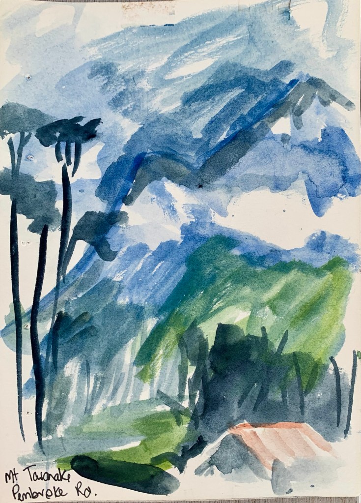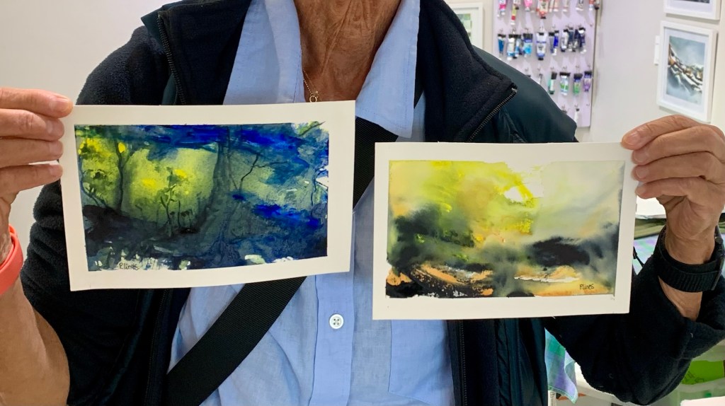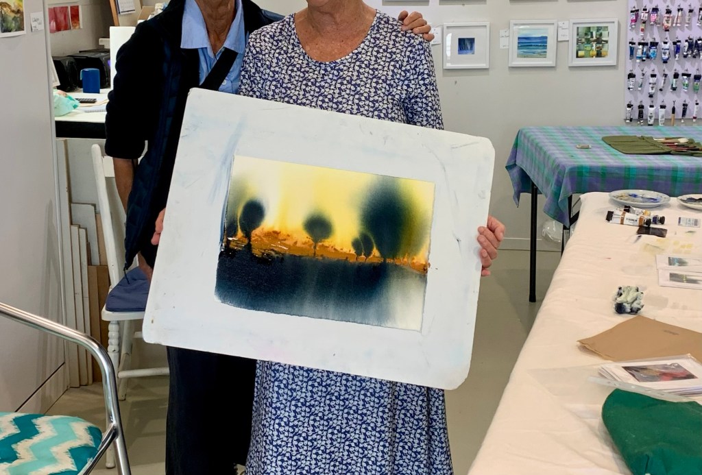 A highlight for this month was a visit from Susie from Chicago. Susie is a watercolour artist and enjoyed seeing my studio and watching as we painted a runny, drippy landscape that really painted itself.